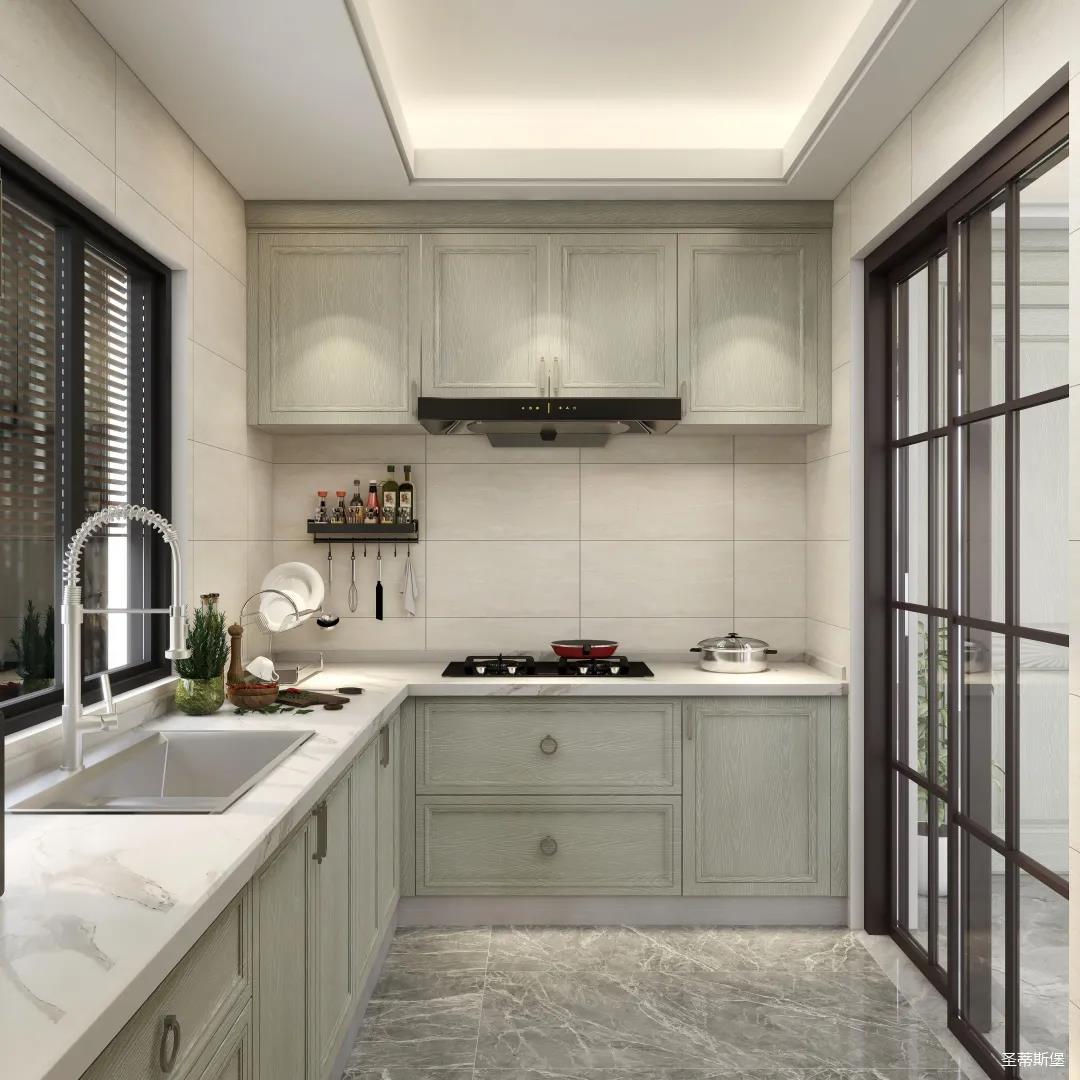 ▲厨房运用几何线条铺满一整面墙,是满满的灵动和美感,实木材质的质感赋予了厨房空间品质与格调。按比例分配大小,打造成储物格框架,让每个角落都留下业主生活的痕迹。
